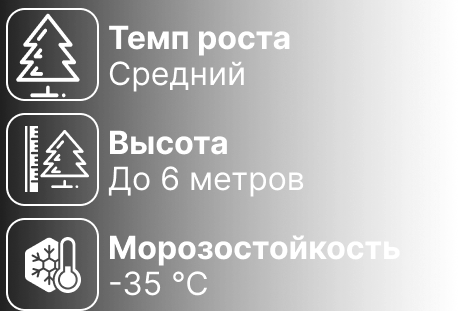 Узкая колонновидная форма, идеально подходит для небольших участков и аллей. Эффектный акцент даже в зимнем саду.
